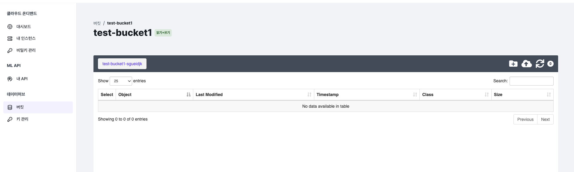 ☁️ EliceCloud🛢️ 데이터허브데이터허브 브라우저를 이용한 버킷 이용 방법このページの見出し데이터허브 브라우저를 이용한 버킷 이용 방법 사용자를 위한 섹션입니다. 버킷 페이지 데이터허브 버킷 > 버킷 > 통해 기관안에 제공 된 버킷을 체크 합니다. 외부 연결 허용 권한이 부여 된 버킷들만 링크가 활성화 되고 접근이 가능 합니다. 버킷브라우저 링크 클릭 후 브라우저가 실행되고 브라우저 안에서 부여 된 권한에 따라 읽기, 파일업로드 (쓰기), 폴더생성, 다운로드 등이 바로 가능합니다.